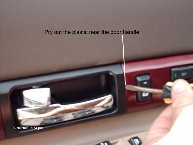 Step 2 remove the screw at the top trailing edge of the door panel with the phillips screwdriver.